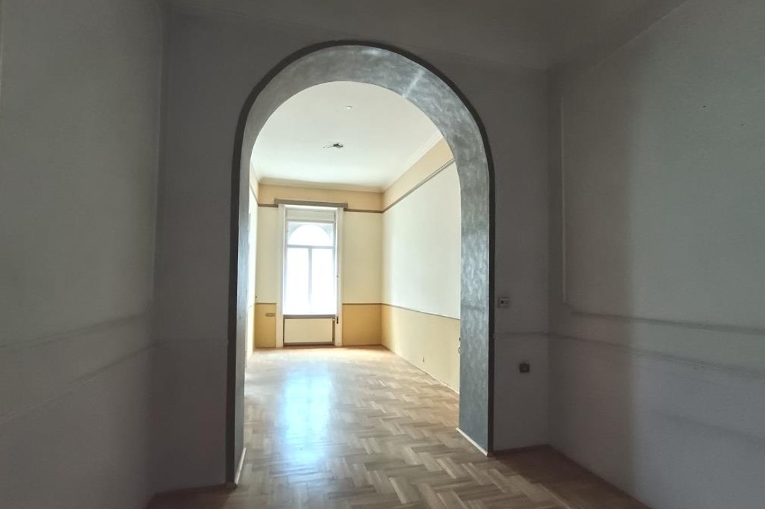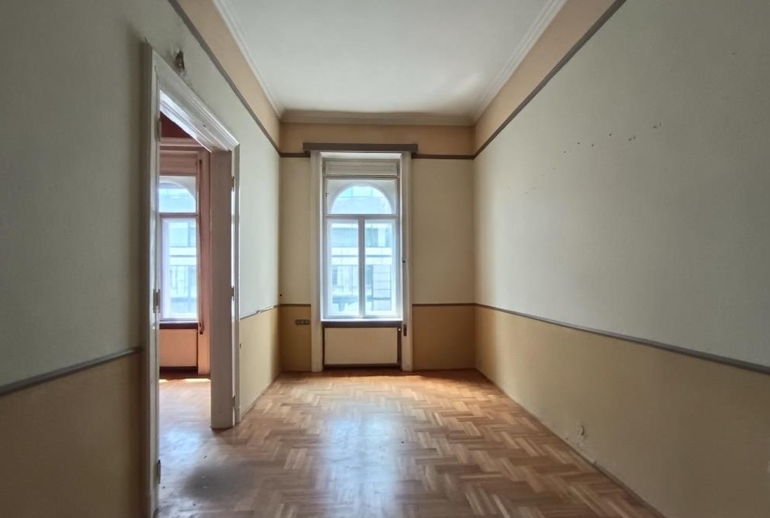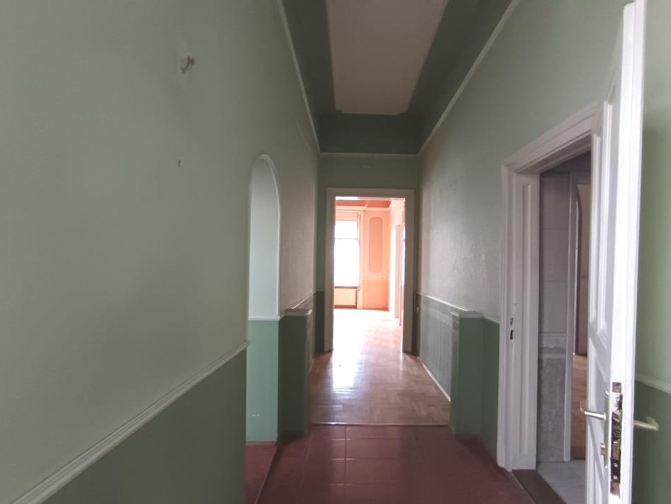 A ház 1930 körül épült, tégla falazatos, földszint + 3 emelet tagolódású, magastetős épület. A lakás 3. emeleti, utcai tájolású, részben felújítandó műszaki és esztétikai állapotú, 97 m2 alapterületű. Lift van. Régi, fa hagyományos üvegezésű homlokzati nyílászárók, gyenge állapotban. A fűtés és melegvízellátás gázcirkóról üzemel, radiátoros hőleadókkal. A kazán le van szerelve. A lakás Ny-i tájolású utcára néző szobákkal.