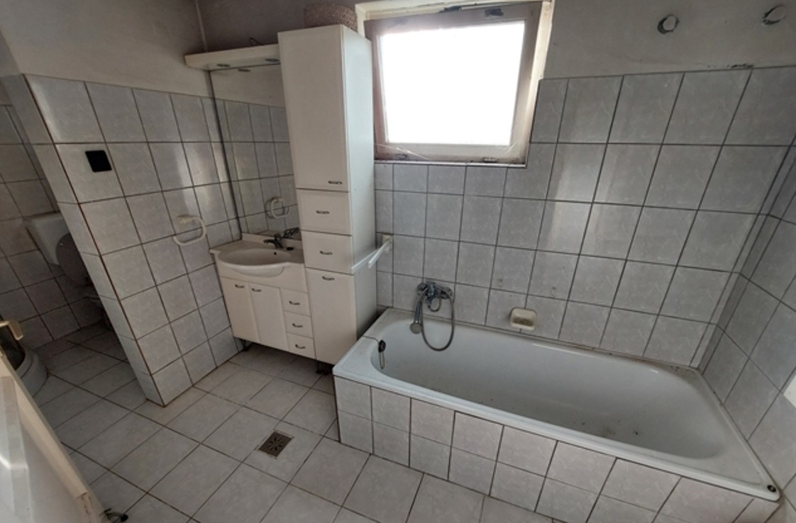 A telek területe 551 nm, egy utcára nyílik, lejtős terepen található, teljesen körbekerített, szabályos négyszög alakú. A felépítmény redukált területe: 84 nm. Kb. 1960-ban, hagyományos építési módban, tégla falazóelemekből épült kertes, családi lakóház. Összközműves. Felújítandó. A fűtést gázkazán biztosítja, radiátoros hőleadókkal és padlófűtéssel. A meleg vízellátást villanybojler szolgáltatja. Az építészmérnöki szakvélemény alapján az ingatlan életveszélyes a nappali födémbeszakadása miatt. Az épület még nem bontandó, helyreállítható, jelenleg alá van dúcolva. A lakóház jelenlegi műszaki állapotára tekintettel a lakhatási igények kielégítésére nem alkalmas. A szobákban felázás miatti vakolatleválás látható. A homlokzati nyílászárók 1 rétegű fa ablakok. A telek utcafronti részén található egy felújítandó, garázsként szolgáló melléképület. A természetbeni és térképmásolaton jelölt állapot eltér. A térképmásolaton még 2 külön épület van feltüntetve, melyek a jelenlegi közlekedővel lettek egybe építve. A lakóház hátsó feléhez hozzáépítettek egy tárolót és pincét. Ezek a térképmásolat szerint a 162/4-es helyrajzi számú telekre nyúlnak át.
